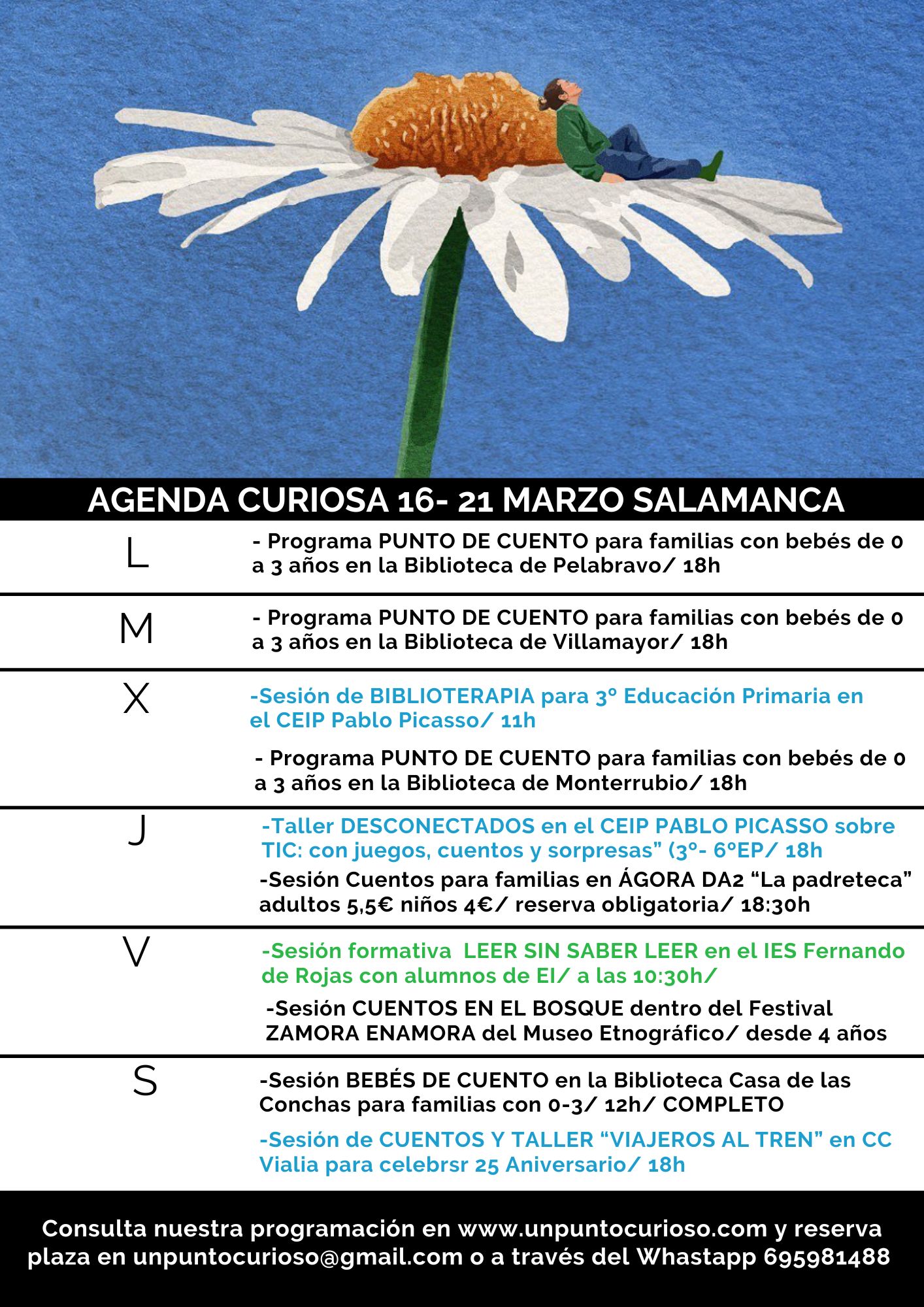Queridas familias: tenemos tantas cosas con contar esta semana que no sabemos por dónde empezar… ¡Por el principio! Estaremos en Bibliotecas Rurales de la provincia con nuestras sesiones de PUNTO DE CUENTO para familias con hijos de 0 a 3 años, nos esperan los munipios de Pelabravo, Villamayor y Monterrubio de Armuña.