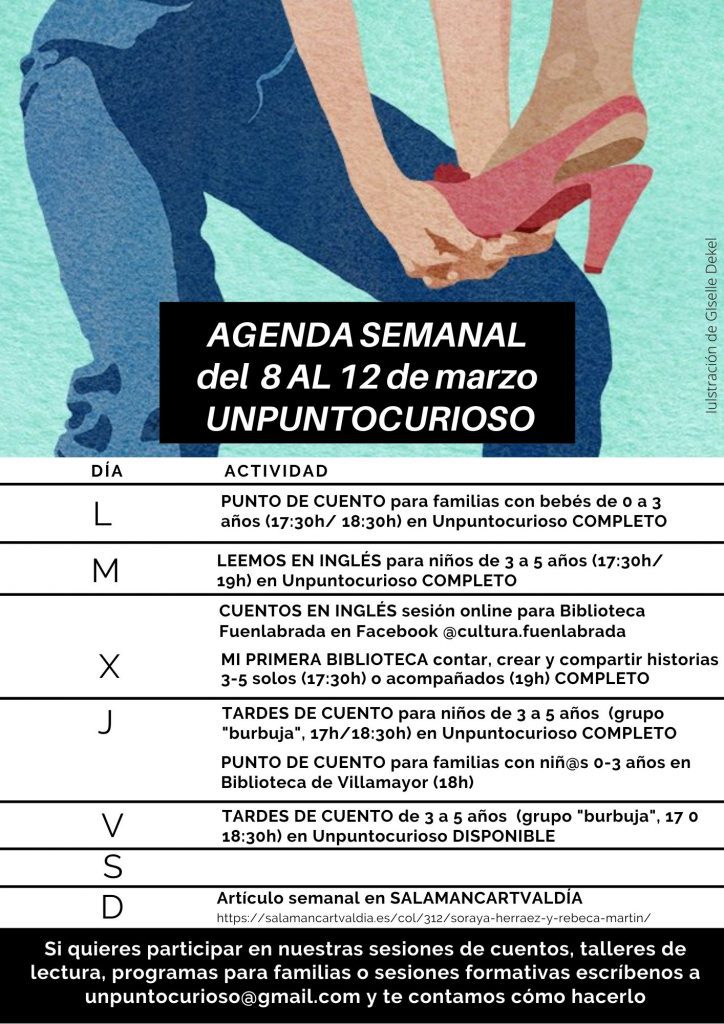 Nuestra historia, la de Unpuntocurioso, está escrita por mujeres fuertes, valientes, emprendedoras y creativas y en días como hoy el mejor homenaje que nos podemos hacer es seguir hacia adelante y no dejar de crear redes entre nosotras. Por eso un lunes mas seguimos a vuestro lado y compartimos nuestra AGENDA SEMANAL con sesiones de […]
