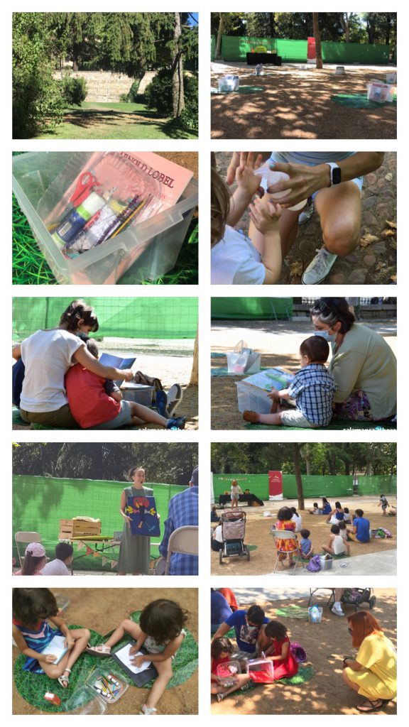 “Había una vez un parque en Salamanca que tenía una biblioteca escondida. Por las mañanas, dos seres curiosos colocaban libros y sorpresas en puntos de hierba verde y fresca y esperaban a que llegaran familias, curiosas también, a disfrutar de ellas. Lo primero que hacían al llegar era lavarse las manos con un jabón mágico […]