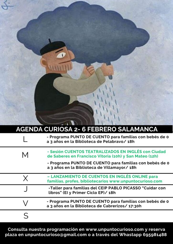Hola familias! Empieza Febrero ¡por fin! Y os acompañamos con programas de lectura y creatividad en municipios salmantinos como Villamayor de Armuña, Pelabravo y Cabrerizos. Todas las sesiones se dirigen fundamentalmente a empadronados y suelen estar completas, pero a veces queda algun huequito ¡podéis llamar por teléfono para preguntar! El miércoles estrenamos en la […]
